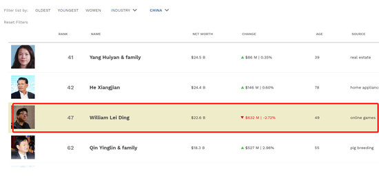 丁磊持有網(wǎng)易44.7%股權(quán),身家226億為內(nèi)地第7富豪