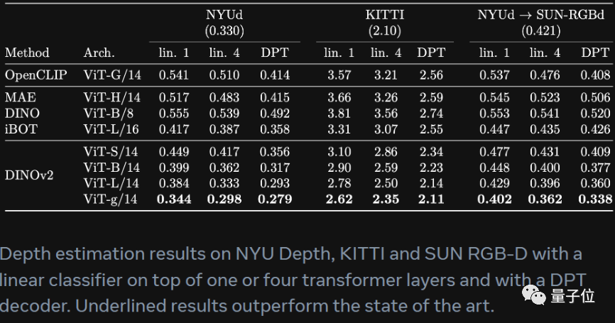 據Meta介紹,這幾個任務中,DINOv2在大多數基準上超過了目前開源視覺模型中表現最好的OpenCLIP。