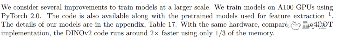 值得一提的是,在效果更好的情況下,DINOv2運行的速度也比iBOT更快,相同硬件下只需三分之一的內存,運行速度就能比iBOT快上2倍多。