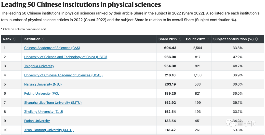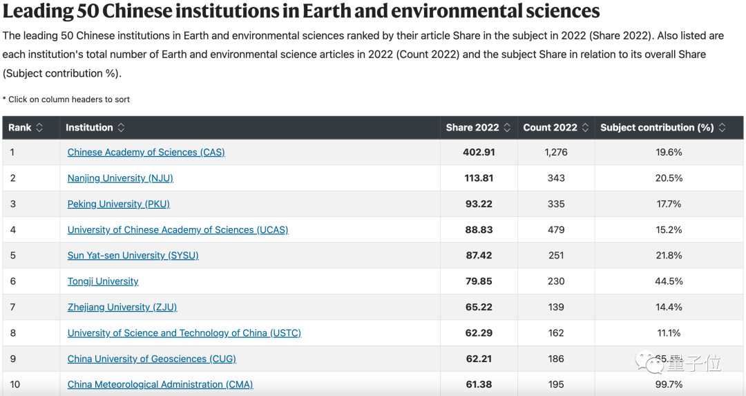 具體來說,Nature會統計一系列自然學科相關期刊中的發文數量,并根據合作院校機構的貢獻度來進行排名。