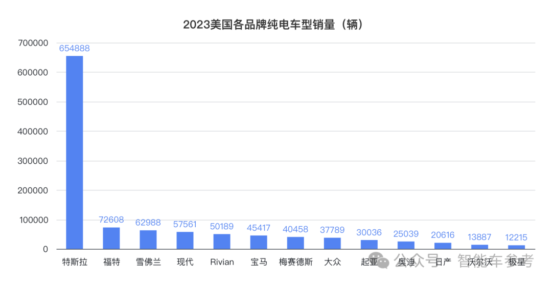 眾所周知,美國純電市場老大只有特斯拉,常年占據50%以上的市場份額。