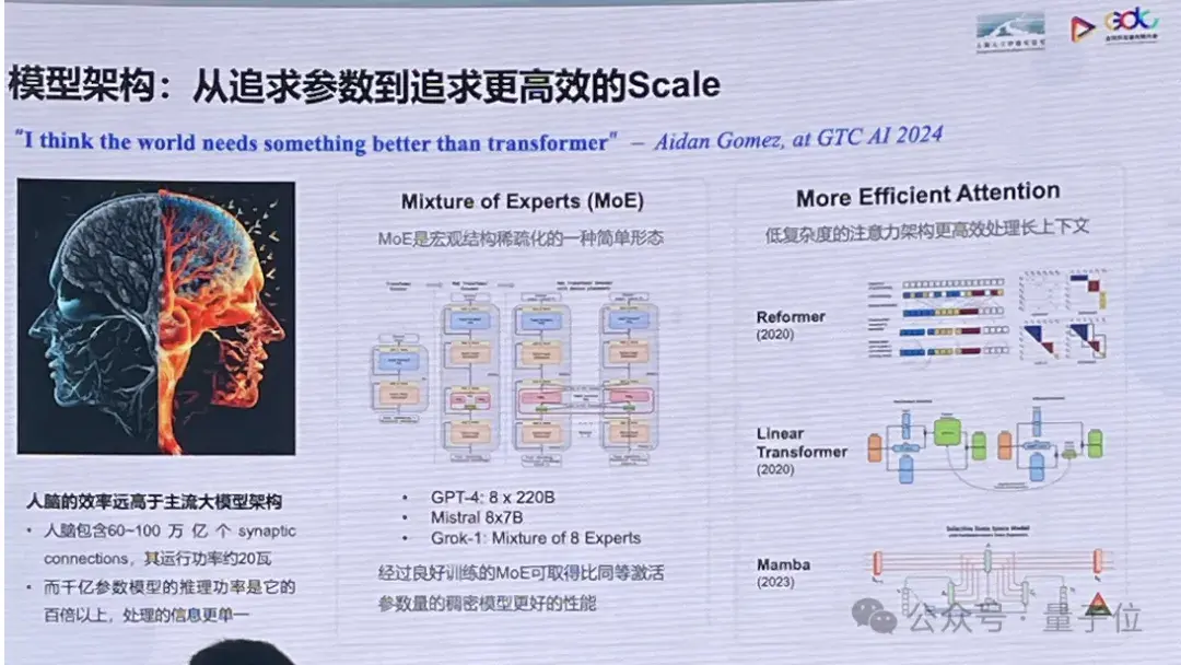 其中,MoE值得關注,業界同時在探索Mamba模型等,以低復雜度的注意力架構更高效地處理上下文。