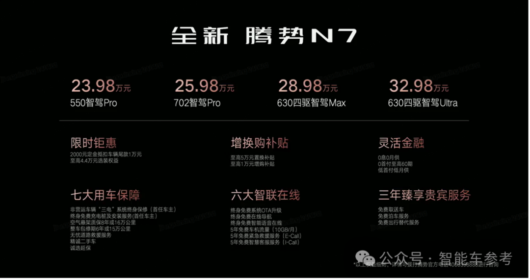 降價增配,官方說,騰勢N7這是來打豪華SUV的價格戰(zhàn)。