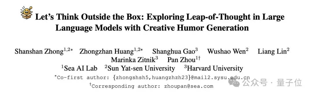 這項研究正是來自中山大學HCP實驗室林倞教授團隊、Sea AI Lab和哈佛大學等單位,主打的就是打破常規思維思考(Think Outside the Box),探索多模態大模型的創造力。
