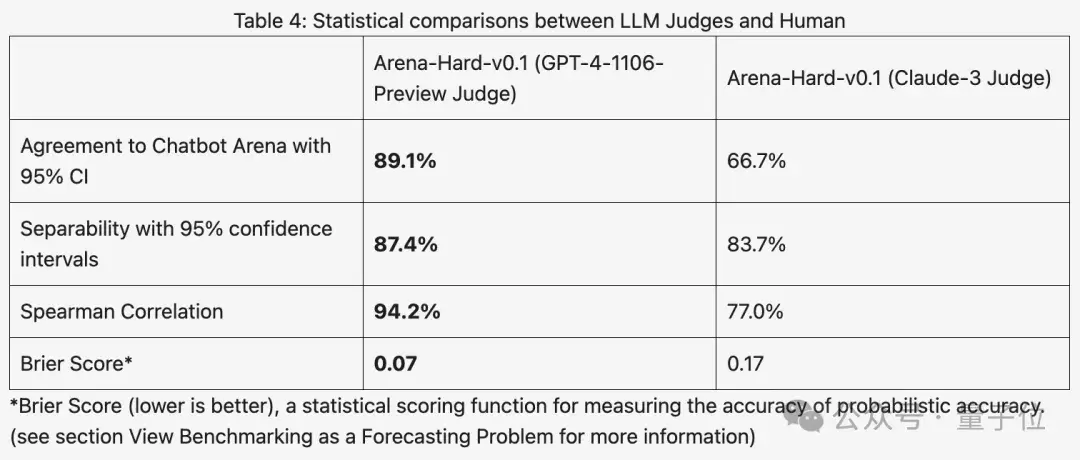 Arena-Hard利用競技場實時人類數(shù)據(jù)構(gòu)建,與人類偏好一致率也高達(dá)89.1%。
