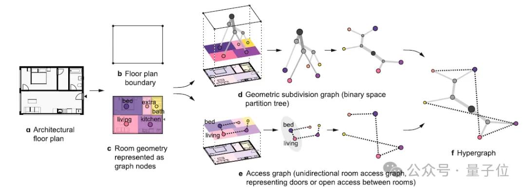 簡單來說,它把空間設(shè)計(jì)中的顯性規(guī)則(比如“餐桌要靠近廚房”)轉(zhuǎn)化為可以被模型學(xué)習(xí)的數(shù)學(xué)結(jié)構(gòu),再通過強(qiáng)化學(xué)習(xí)策略,讓模型在面對不同戶型或使用場景時(shí),能夠做出相對合理的結(jié)構(gòu)判斷。