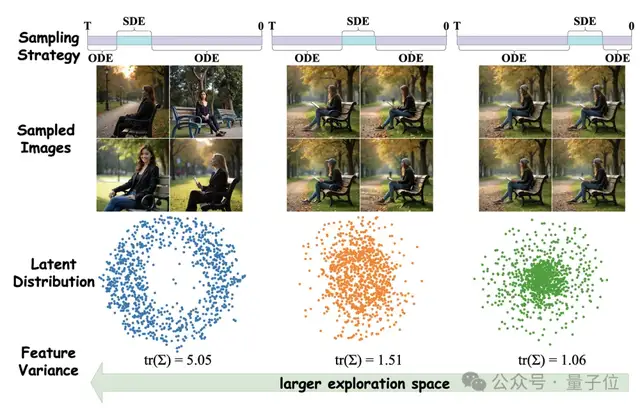 當(dāng)前概率流模型中的GRPO方法,如Flow-GRPO和DanceGRPO,在每個(gè)去噪步驟中利用隨機(jī)微分方程(Stochastic Differential Equations,SDE)采樣引入圖像生成的隨機(jī)性,以解決RLHF中對(duì)隨機(jī)探索的依賴。