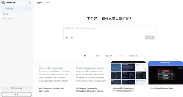 MiniMax其核心模型為MiniMax-M1,升級(jí)「1M超長上下文」,集「Chat」和「Agent」于一體,Agent模式能在跨Web開發(fā)、視頻/音頻創(chuàng)建、文檔分析等不同領(lǐng)域進(jìn)行多步驟規(guī)劃和自動(dòng)化生成,針對(duì)復(fù)雜場(chǎng)景提供端到端解決方案。