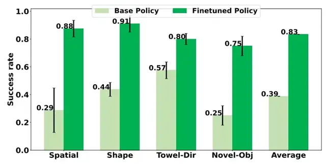 - 新物體任務:抓取“手套”、“訂書機”等未見過物體的成功率,從25%升至75%。