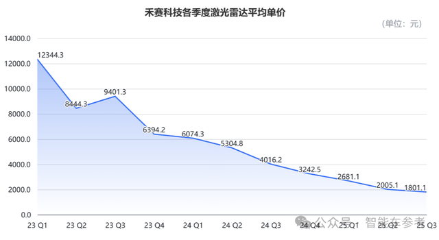 以交付和營收進行大致計算,這一季度禾賽激光雷達的單價已進一步降到2000元以下,大約為1801元,同比下降55.15%,環比下降10.18%,可能比你現在下單一臺紅米手機還便宜。