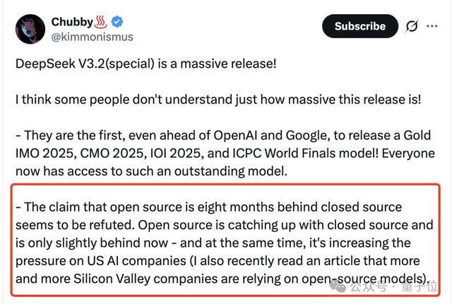 這不僅擊碎了開源模型落后閉源模型半年的質疑,又順便給硅谷的閉源AI公司好好上了一波壓力。
