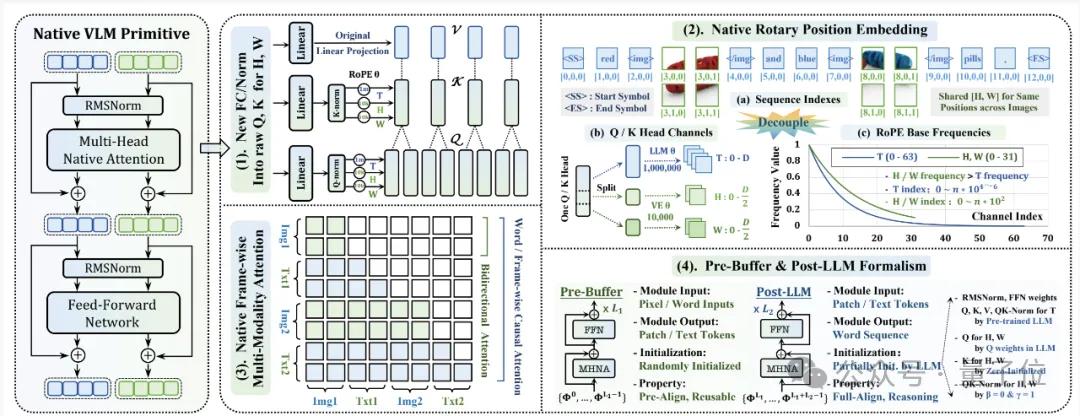 除了這三大核心,NEO還配套了一套名為Pre-Buffer & Post-LLM的雙階段融合訓練策略。
